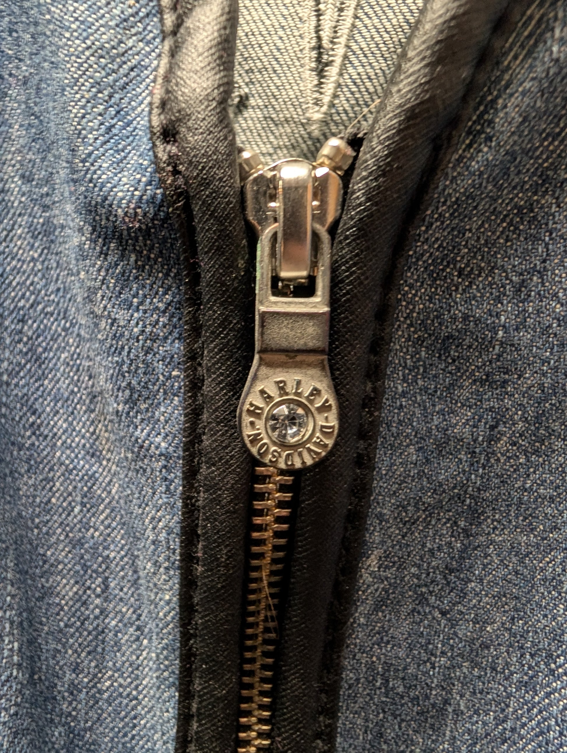 Front: High-quality zip closure with signature Harley-Davidson branded zipper pull