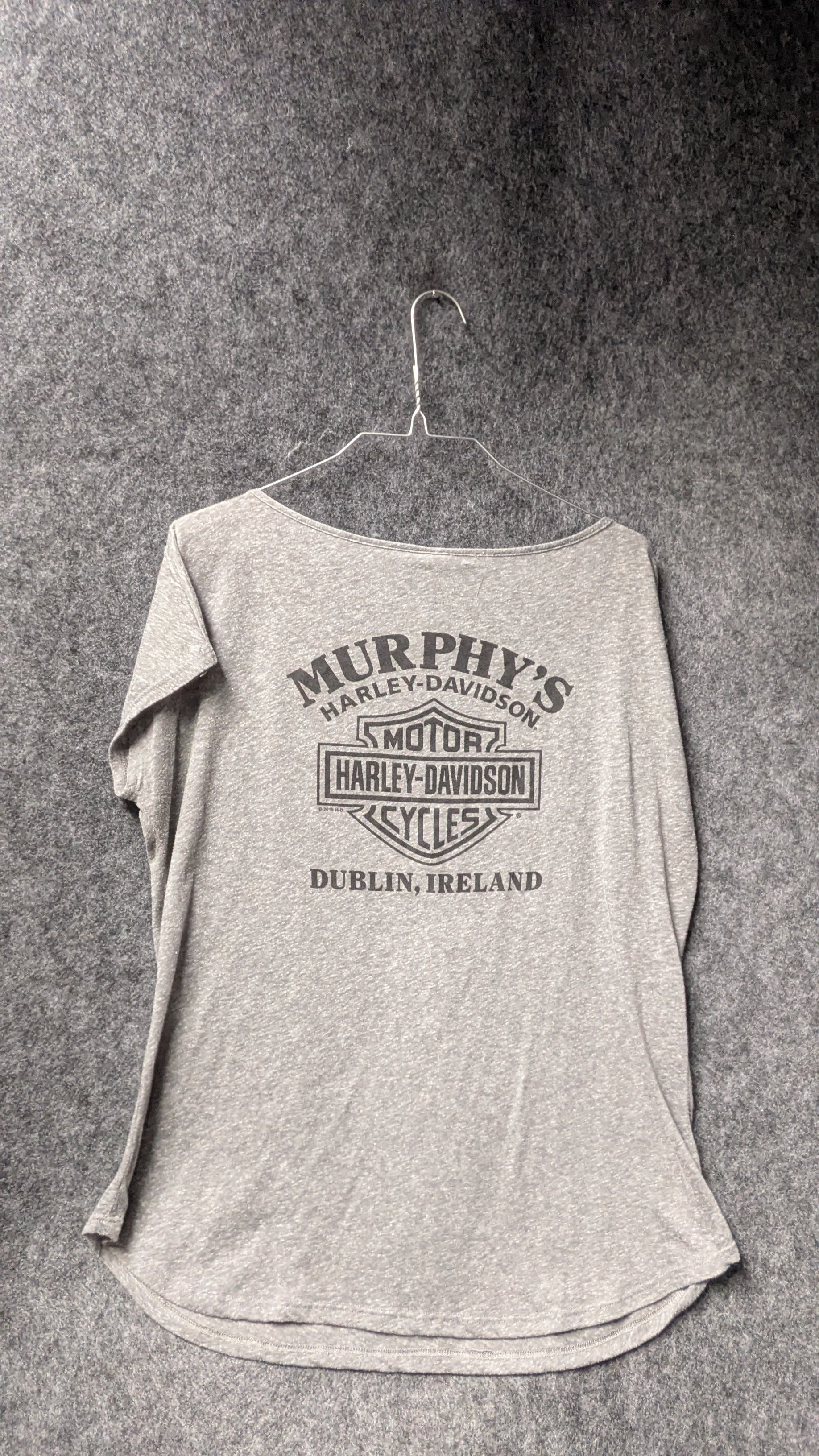 The back highlights the Murphy’s Harley-Davidson – Dublin, Ireland dealer logo, making this a great collectible piece for anyone who loves rare international Harley tees.