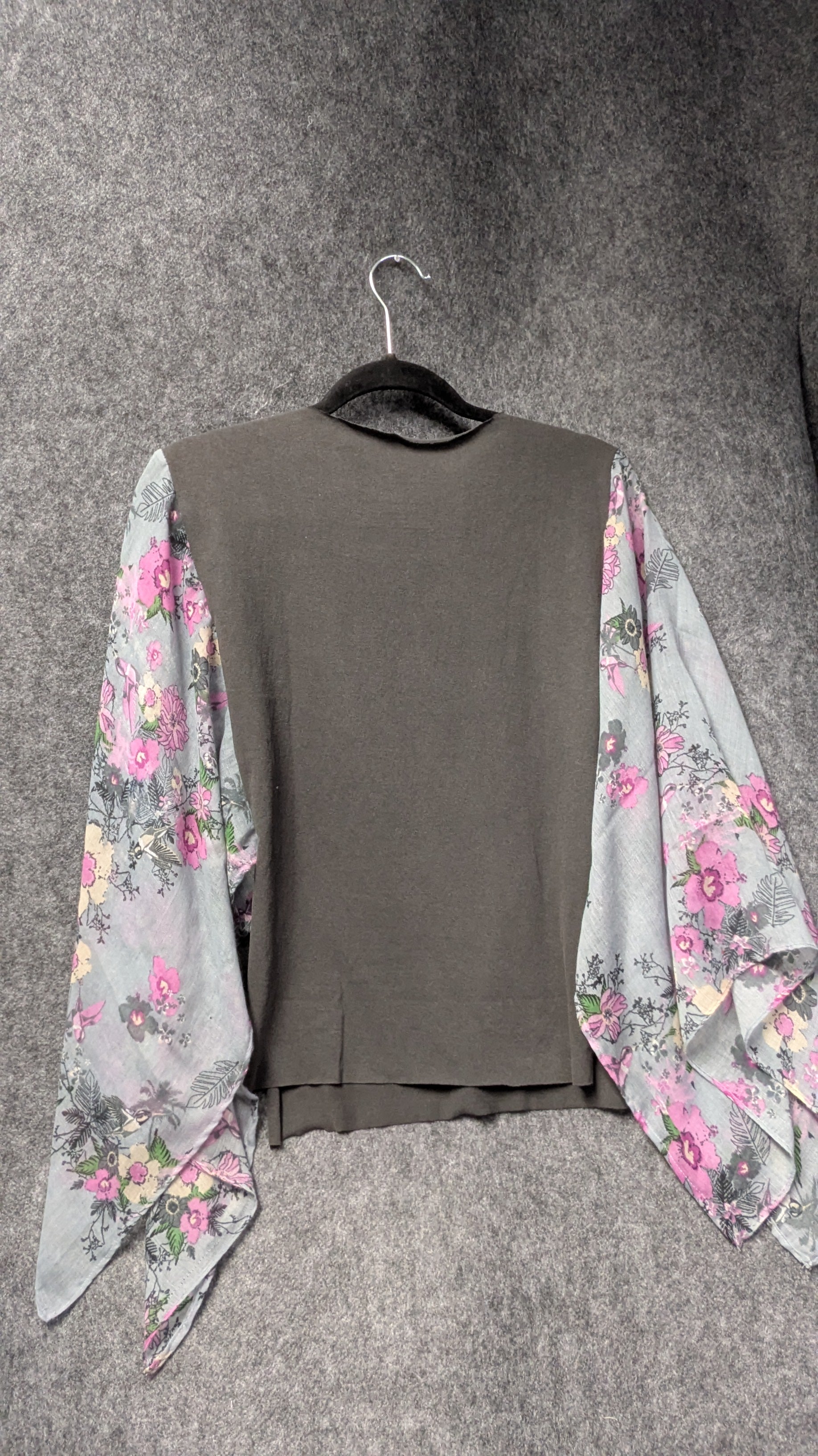 Color: Charcoal body with pastel floral sleeves