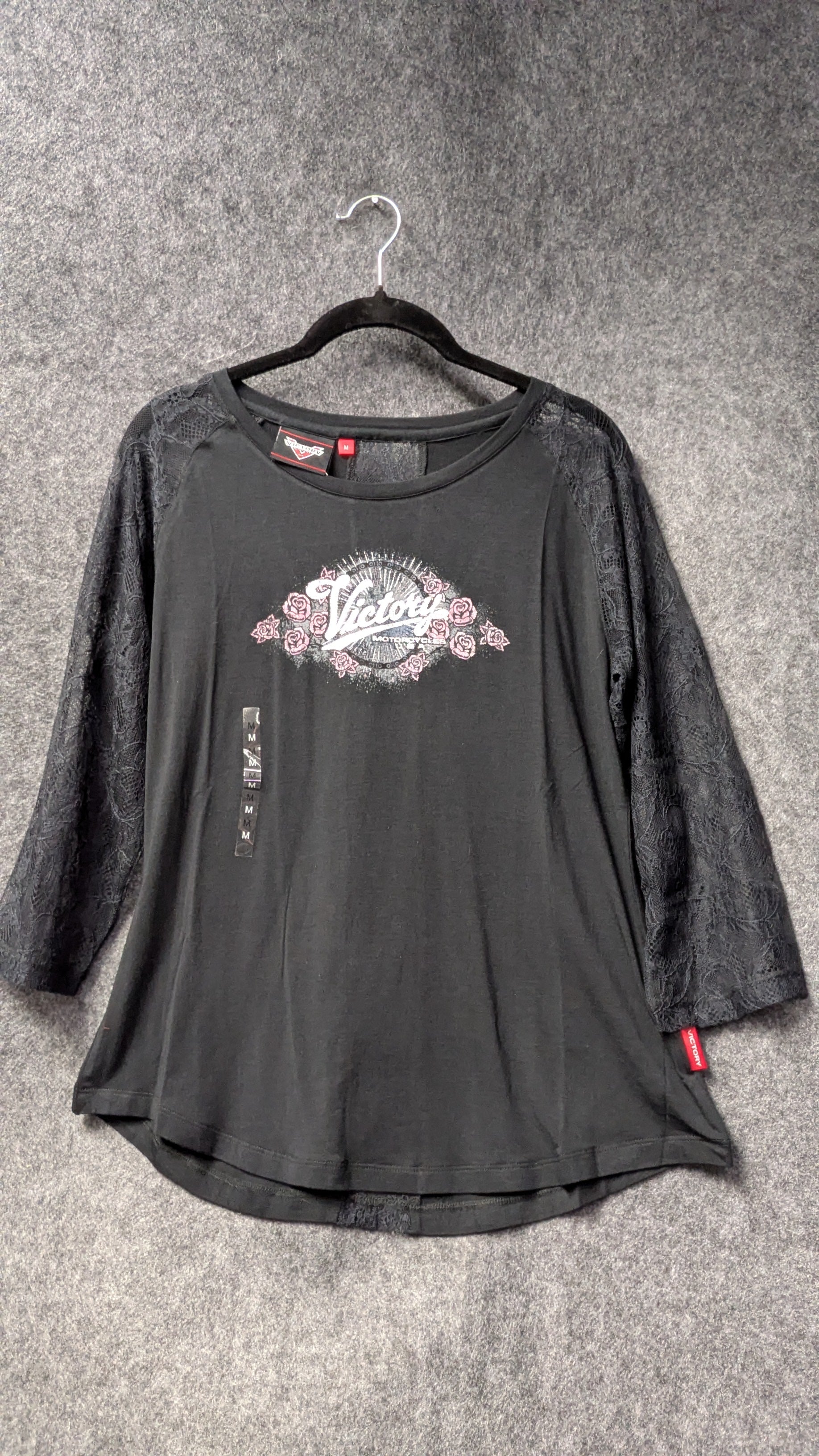 Victory Motorcycles Women’s Black Lace Sleeve Top – Size M (NWT)