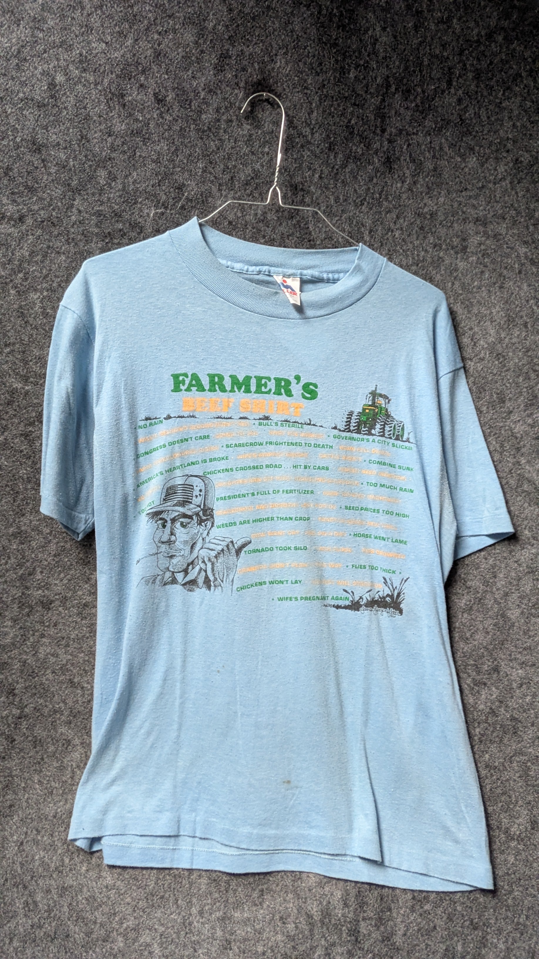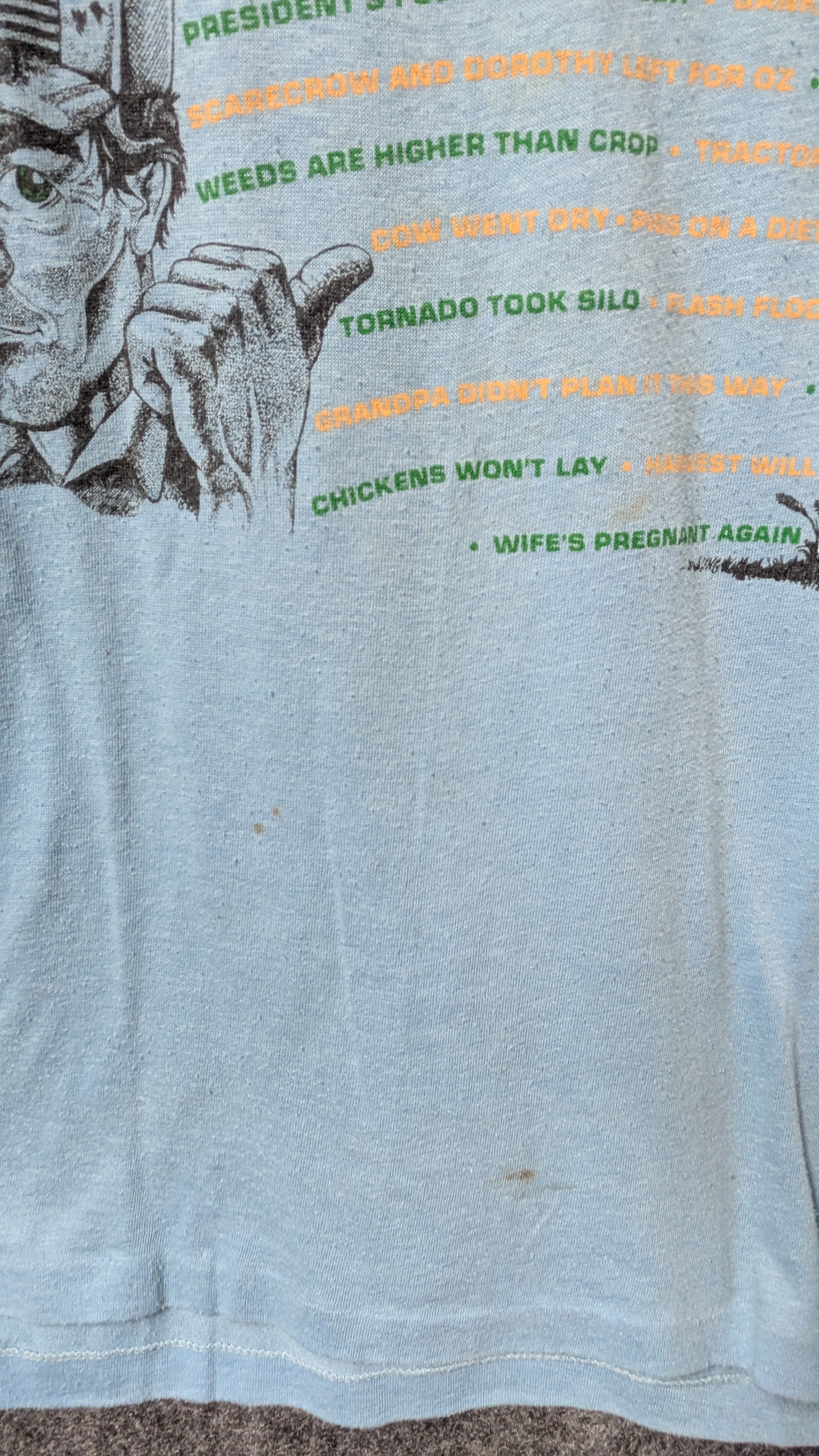 Single stitch, very soft t-shirt. Small stains at bottom of shirt