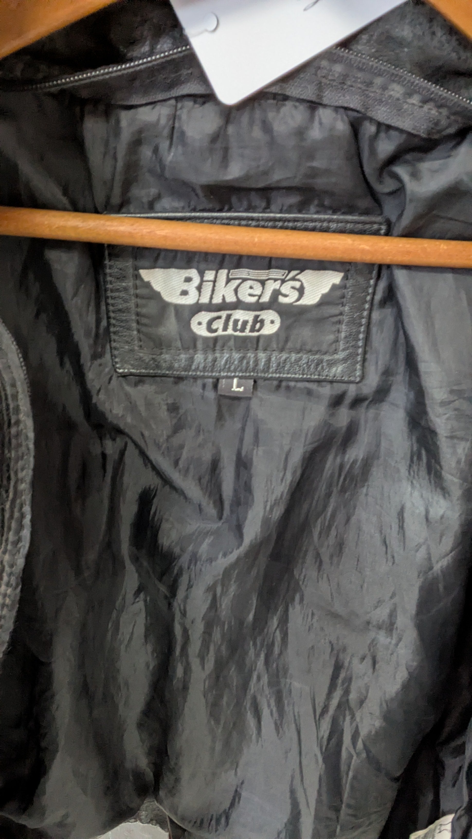 All the details on this fringe Bikers Club leather jacket. Size Large.